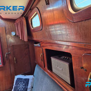 Over the past year, Johanna has benefited from an extensive, high-quality refit. The hull was professionally sandblasted and repainted, with topsides and decks also professionally repainted. The interior has been thoughtfully refreshed while preserving her original charm and character. Upgrades include new keel cooling, new head, refreshed fittings, varnish work re-done and a new canvas cover. Her generous beam and solid steel construction provide a spacious and secure platform on the water. Powered by an economical Perkins diesel engine, Johanna cruises comfortably at around 10 knots, delivering relaxed and efficient performance.