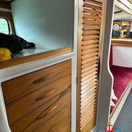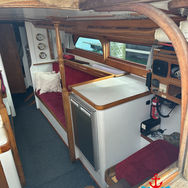 Below deck, the Raven 38 offers a warm, inviting interior with rich wood finishes, generous natural light, and clever use of space. The saloon is ideal for entertaining or relaxing after a day on the water, while the well-appointed galley, private cabins, and ample storage reflect a thoughtful, liveaboard-ready design.