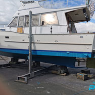 Powered by a very reliable and well maintained 120hp Ford on shaft, she cruises at 7.3 knots and a max speed of 8.5 knots. Twin helm stations with hydraulic steering. The open plan saloon features a large dining table. A well laid out galley down the Portside includes a three-burner hob, grill and oven, with generous seating on the Stbside. Down below the forward cabin features a double berth. The side cabin has two adult size single bunk berths. A separate shower stall, sink, and head with holding tank, and ample storage complete this area.