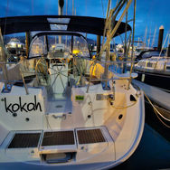 Looking for a boat with the ‘WOW’ factor?? Have a look at this stunning example of the Beneteau Oceanis 400. The Oceanis design is Beneteau’s long-distance, blue-water range. Kokah is a Strong and safe boat for the whole family, that is very pleasing on the eye and a real pleasure to sail. Kokah boasts a roomy saloon with a full galley to port and spacious seating in micro suede around the table to starboard. She has 3 separate cabins, each with double berths, 2 separate heads, and a chart/electronics table. The cockpit is roomy, has a walk-through transom and sugarscoop stern, making swimming even more inviting! Kokah has in mast furling with an almost new Main sail (2019, with little use) and a good condition (2017) head sail on a roller furler.