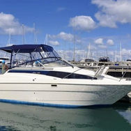 Dream Catcher is a little over 27ft in length and was manufactured by Bayliner in 1996. Extensively refurbished through 2021-22 and is in good condition. Refurbishment included a new 5.7ltr 300HP Mercruiser Magnum 350 MPI (with Bluetooth integration for engine data), Alpha one, Gen II Stern Drive & propeller Feb 2021 by Gulflands Marine, New seating, new canopy, new house and starter batteries and electrical isolation switches, new bilge pumps, new helm chair. Also comes with: EPIRB, VHF, Lowrance 7ti, 4 x inflatable life jackets, 4 x other life jackets, new 2.5m tender dinghy, ropes, fire extinguishers. She sleeps four, two in lounge area which converts from seating area (and dining table) and two in a double bed under cabin area. Main toilet with manual flush into holding tank and a shower room and hand basin. Galley area with portable gas stove, sink, cupboards and fridge. Helm area comfortably seats 4 with an additional 2 seat pull out bench in the cockpit area, drop down ladder for swimming. Rear deck also has hot & cold shower. Auxiliary outboard bracket for trolling, fitted to transom.